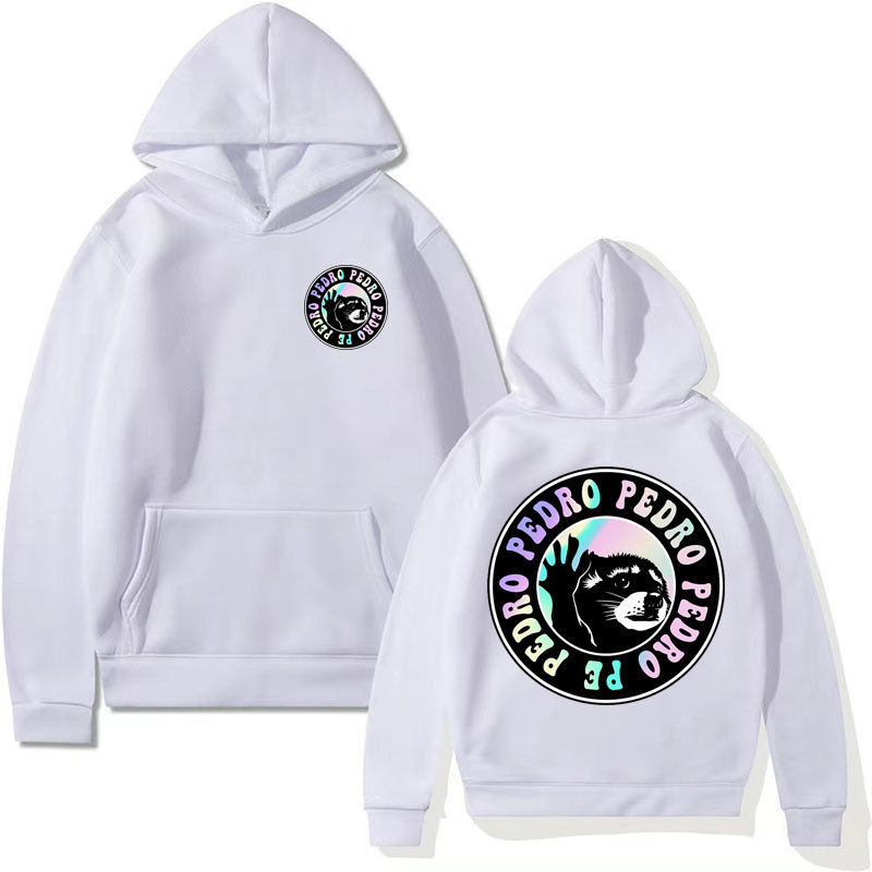 Pedro Graphic Hoodie – White Sweatshirt with Colorful Cat Design and Bold Print
